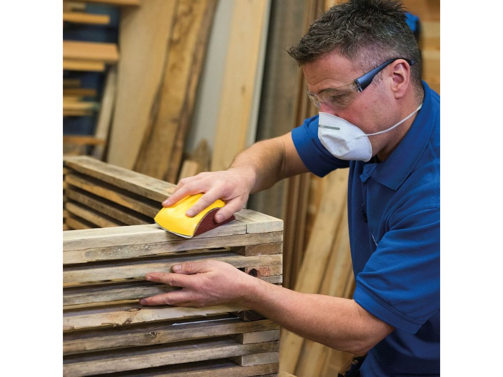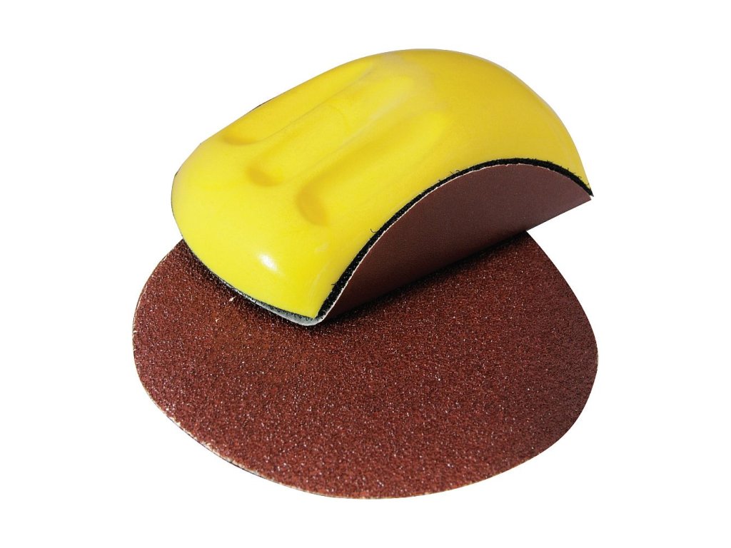 Ergonomický brusný blok se suchým zipem pro brusný papír o průměru 150 mm. Možno zpracovat již na brusce použitý brusný papír pro jemné dokončovací práce. Velmi příjemný do ruky. Balení obsahuje 3 brusné papíry o hrubosti 40, 120 a 240.