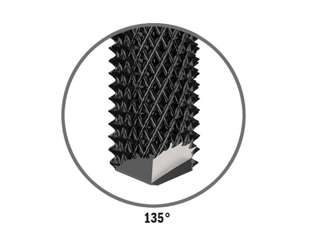 Úhel čepele 135° umožňuje práci na vertikálních CNC strojích s minimalizací ohýbání zpracovávaného materiálu.