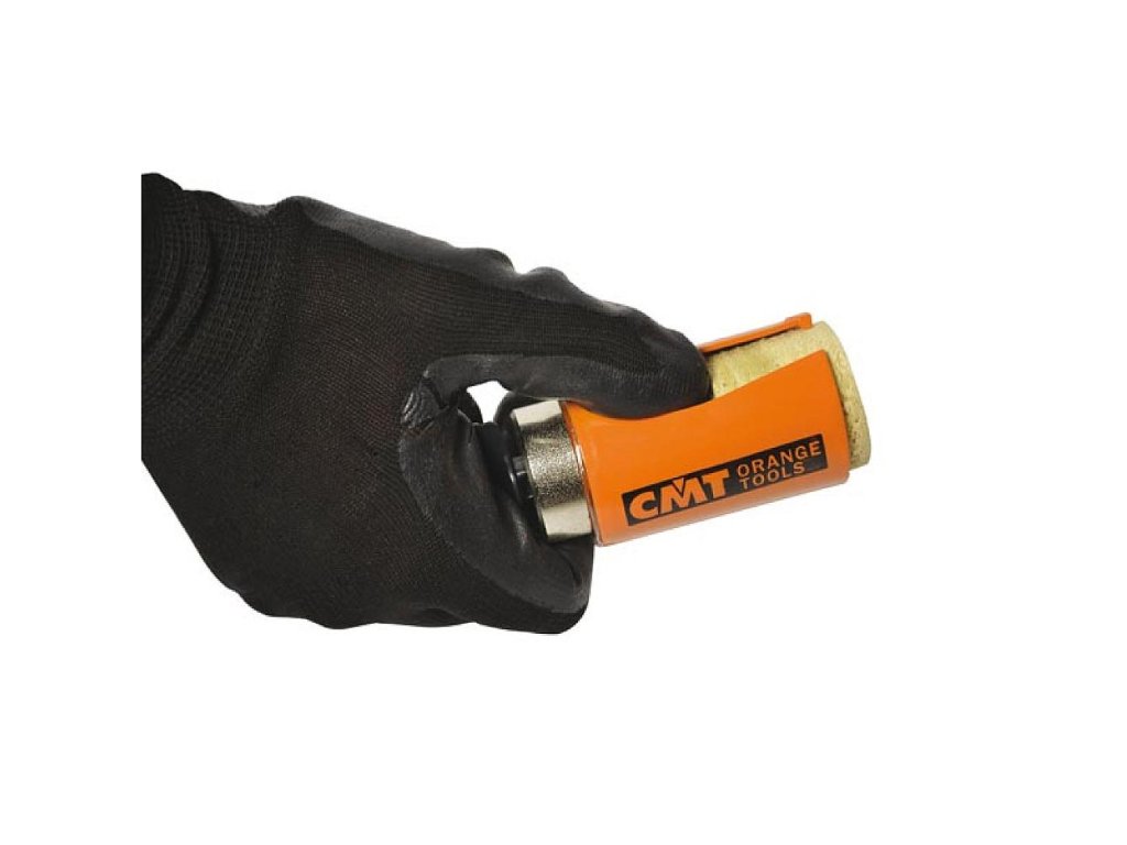 • Dokonale kulatý tvar korunky.• Silné ocelové tělo korunky.• Tvrdokovové břity s dlouhou životností.• Velké otvory pro odvod materiálu.• Rychlá a snadná výměna středícího vrtáku.Bi-Metal Plus 8% CobaltPrémiový bimetal s 8% kobaltu poskytuje extrémní výkon a až o 50% delší životnost než konkurence.Design zubůJedinečná geometrie zubů s pravidelnou roztečí poskytuje hladší řez a lepší odvod špon, čímž se zabrání ucpávání a přehřívání. Střídavě a stranově rozvedené zuby minimalizují tření a ulpívání materiálu. Díky tomu nemusíte na materiál působit velký tlak. SYSTÉM FASTX4: REVOLUCE VE VRTÁNÍ OTVORŮ!Inovativní systém CMT nabízí velké výhody všem profesionálům.X1 RYCHLÉ UPNUTÍ - VŠE NA JEDNO CVAKNUTÍ!Vyvinuli jsme jedinečný patentovaný Fast Lock systém pro rychlou výměnu mezi velikostmi a typy během několika vteřin!Jediný systém, který umožňuje vyměnit vrtací korunku a středící vrták bez použití jakýchkoli nástrojů.X2 RYCHLÉ VRTÁNÍ - RYCHLÉ VRTÁNÍ V KAŽDÝCH PODMÍNKÁCH.Vrtejte rychle a přesně i pod úhlem pomocí jedinečné geometrie těla a skvěle naostřeným zubům.• předvrtejte otvor pod požadovaným úhlem• nasaďte korunku zpět do přední polohy a dokončete vyvrtání otvoruX3 RYCHLÉ ZVĚTŠENÍ OTVORU - JEDINEČNÉ ŘEŠENÍ PRO ZVĚTŠENÍ OTVORU!CMT přichází s unikátním rychlým zvětšením otvoru. Na speciální vrták můžete nasadit 2 korunky, a vyvrtat tak širší otvor během několika vteřin.X4 JEDNODUCHÉ VYJMUTÍ ZÁTKY - SNADNO VYJMĚTE ZÁTKU Z KORUNKY JEDNÍM STISKNUTÍM!Už žádné šroubováky nebo jiné nástroje!Zátku bez námahy vyjměte obrácením středícího vrtáku.OtáčkyVrtání při vyšších než doporučených otáčkách zkracuje životnost korunkových vrtáků a vytváří nekvalitní otvory.Tlak na materiálPři vrtání vyvíjejte takový tlak, aby došlo k dostatečnému odvodu špon. Pokud se korunkový vrták přehřívá nebo špony z materiálu ucpávají otvor, tlak snižte. Nedostatečný tlak předčasně otupuje zuby, naopak příliš velký tlak může zuby zcela zničit.Chladící olejChladící olej slouží při vrtání kovů k několika účelům:• ochlazuje vrták a obrobek• snižuje vznik tepla a opotřebení, které zkracují životnost vrtáku• napomáhá odstranit špony• použitím chladícího oleje prodloužíte životnost vrtací korunky až o 500%Materiály:• kovy (pevnost až 1000 N/mm2)• měkká ocel• nerezová ocel• neželezné kovy, hliník• sendvičové materiály• litina• měď, pozinkovaný plech, mosazParametry:• Zuby: střídavě a stranově rozvedené zuby• Celková délka: 45 mm• Řezná hloubka: 38 mm• Doporučené otáčky: kov 550 ot./min. (chlazení olejem) nerezová ocel 270 ot./min.(chlazení olejem) litina 370 ot./min. (vrtání bez chlazení) hliník 800 ot./min. (chlazení terpentýnovým olejem)• Příklep mějte při použití korunkových vrtáků vždy vypnutý.