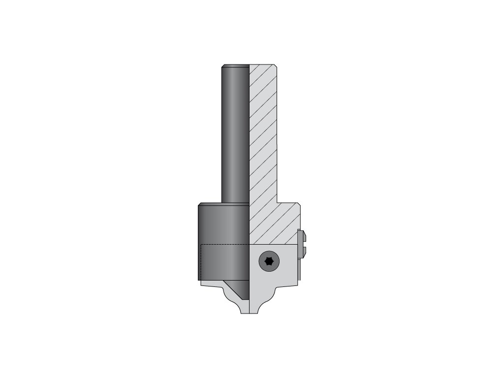 Stopková fréza, je vyrobená z pevnostnej ocele a je precízne vyvážená. Nástroj je možné osadiť až 5 -tich sadami profilových HM žiletiek a vyfrézovať tak rôzne profilová dvierka podľa Vášho výberu.