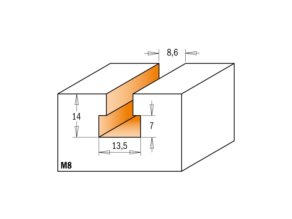 CMT C950 Fréza na cylindrické drážky HW - D13,5x14 d8,6 L49 S=8 Z2, M8