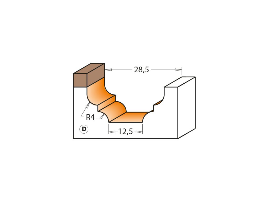 CMT C965B Profilová fréza čelní, ložisko - Profil D, R4 D28,6x13,3 S=8 HW