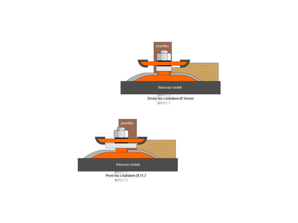 Dodávána se dvěma ložisky, které Vám vymezí hloubku úběru při použití 2 průchodů při frézování profilu.
