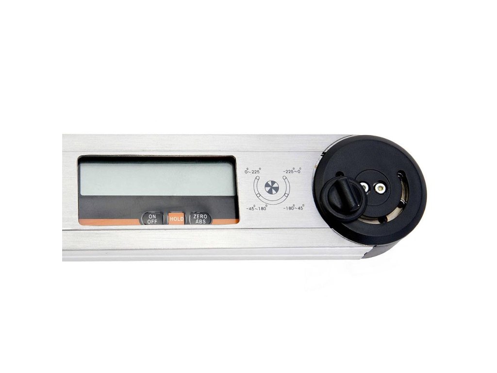 Tento digitální úhelník s ramenem je měřicí nástroj s mnoha funkcemi. Velmi snadno můžete změřit úhel a pomocí pravítka o délce 270 mm nakreslit čáru řeznou. Čitelný velký displej vám ukáže přesný úhel v rozsahu 0–225° s rozlišením 0,05°. Úhelník slouží také jako vodováha a obsahuje jednu libelu.Vlastnosti:• Analogový ukazatel kvadrantu úhlu• 4 nastavitelné díry pro fixaci úhelníku ve specifických úhlech• klovové pravítko• hliníková základna• LCD displej• blokovací ovládací šroubSpecifikace:• Baterie: 3V / L lithiová 2000h• Rozlišení: 0,05°