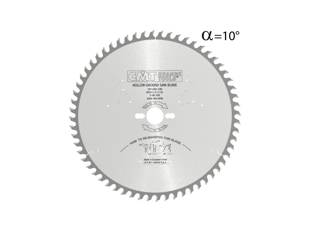 Standardní pilový kotouč s vydutými zuby pro jemný a čistý řez oboustranně povrchově upravených materiálů, jako lamina nebo dýhy, na kotoučových nebo vertikálních pilách (např. Striebig, Holzher) bez předřezu. Pro lamino, DTD, MDF, překližku a příčné řezy dřeva.