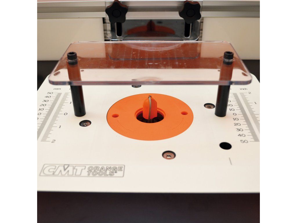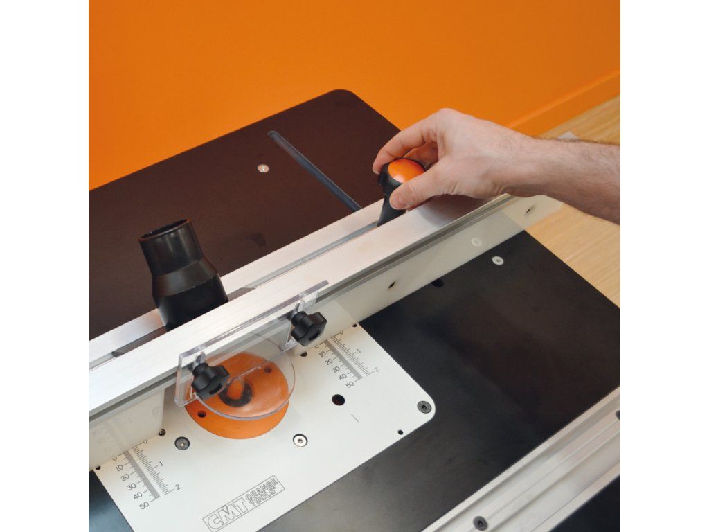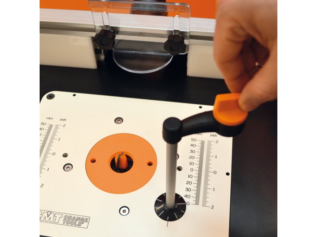 Výškově nastavitelný frézovací stolek pro upnutí horní frézky s dvěma T drážkami a bohatým příslušenstvím. Oddělitelný podstavec, frézovací deska i pravítko. Každou část lze dokoupit zvlášťí.