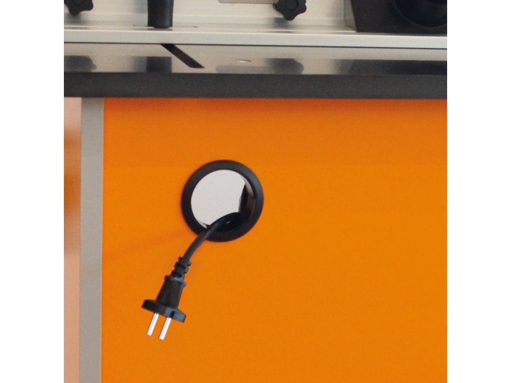 INDUSTRIO je frézovací stolek určený pro každodenní profesionální použití. Konstrukce stolu umožňuje upnutí nástrojů do průměru 89mm. Je rozdělen na tři části, které mohou být zakoupeny samostatně. Velkou výhodou je vložená výškově nastavitelná upínací deska frézky z tvrzeného plastu. Na desce stolu je integrovaný profil s dvěmi T drážkami pro přesné vedení příslušenství nebo Vámi vyrobené posuvné šablony.