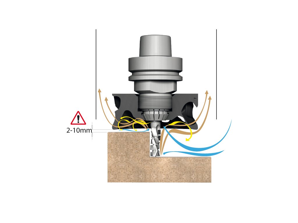Matice s kinetickým odsávacím systémem prachu je určena pro zlepšení frézování na CNC strojích. Zabezpečuje jedinečnou úspěšnost odsávání při frézování dřevotřísky, lamina, MDF, Corianu, sádrokartonu, OSB desek nebo HPL desek. Systém je vhodný pro všechna kleštinová sklíčidla standardně používaná v dřevařských CNC frézkách, kleštinový systém ER32, ER40 a ECO25 (DIN6388). Tělo odsávací matice je vyrobeno z lehké slitiny potažené silným keramickým povrchem, který zabezpečuje maximální ochranu, minimalizuje tření a zároveň je antistatický. Kinetické odsávání je výkonné a účinné i při nízkých otáčkách a to od 6000 až do 20000 otáček za minutu.