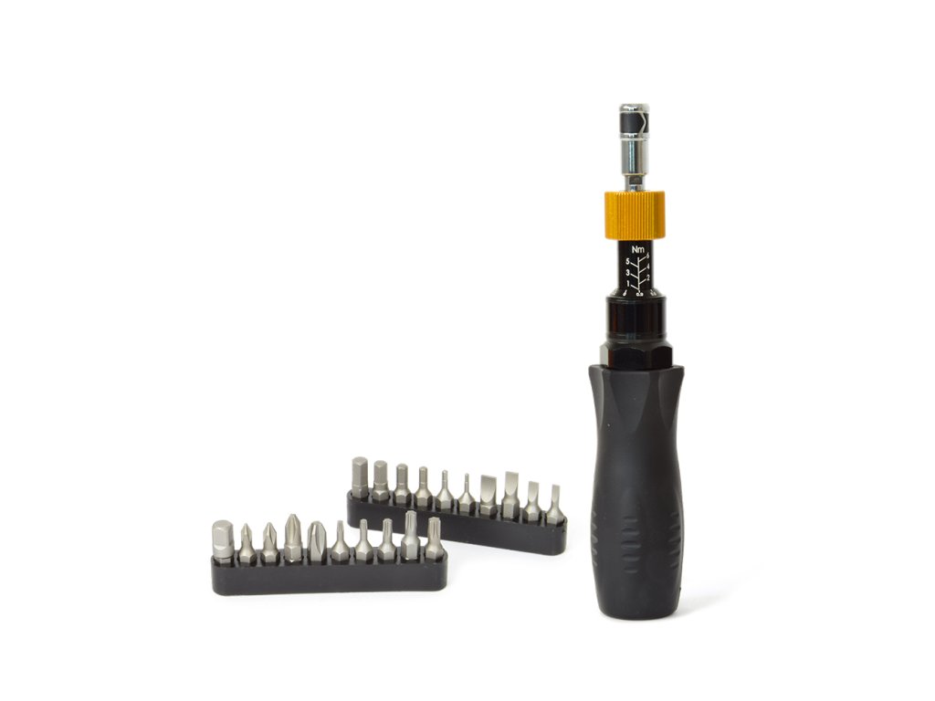 Nastavitelný momentový šroubovák je dodáván v pevném plastovém pouzdru spolu s 20 bity, návodem k použití a kalibračním listem podle norem DIN ISO 6789 a ASME B107.300-2010.