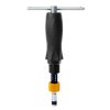 Šroubovák pro snadné upínání a povolování HW nožů a žiletek do stopkových fréz a frézovacích nebo hoblovacích hlav přesně podle požadovaného upínacího momentu. Upínáním žiletek pomocí momentového šroubováku se vyvarujete prasknutí žiletky při přetažení nebo naopak jejímu povolení, pokud byla utažena nedostatečně. Šroubovák lze díky přiložené redukci využít i pro upínání nástrčných šestihranných klíčů s upínáním 1/4“. Pomocí numerického ukazatele na šroubováku přesně nastavíte utahovací moment v krocích po 0,1 Nm v rozsahu 1-6 Nm. Dosažení požadovaného momentu upínání je zvukově indikováno cvaknutím mechanismu, který je zároveň rozpoznatelný mírným zavibrováním rukojeti. Momentový šroubovák je vybaven upínáním 1/4“ v rukojeti, kde je možné upnout T-klíč (není součástí balení) pro snažší dosažení vyššího točivého momentu.