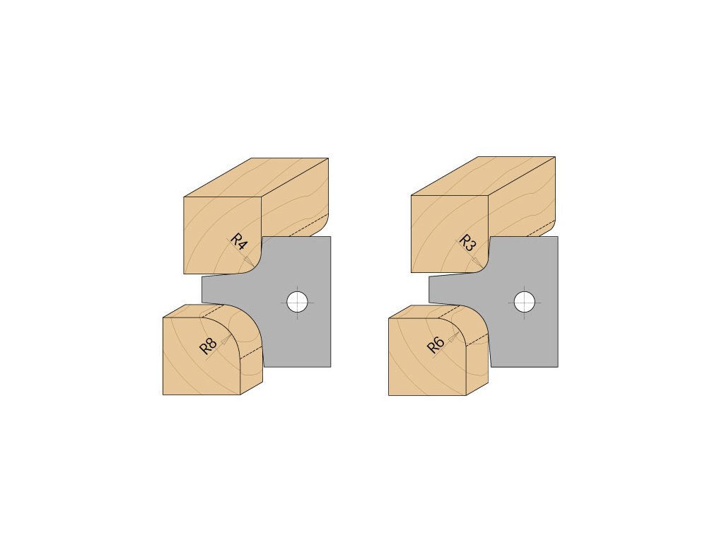 Tato multiradiusová frézovací hlava je určená pro radiusové zaoblení hran. Žiletky jsou vybroušeny ze dvou stran s větším a menším radiusem. Celkem tak můžete s frézou vyrobit až 6 různých radiusů. Standardně je frézovací hlava dodávána s HM žiletkami s rádiusem 5 a 10mm. Je možné doobjednat další dvě sady žiletek s rádiusy 4 a 8 mm nebo 3 a 6 mm. Určeno k použití se spodní frézkou. Výborně se hodí pro všechny materiály, zejména na tvrdé dřevo a deskové materiály.