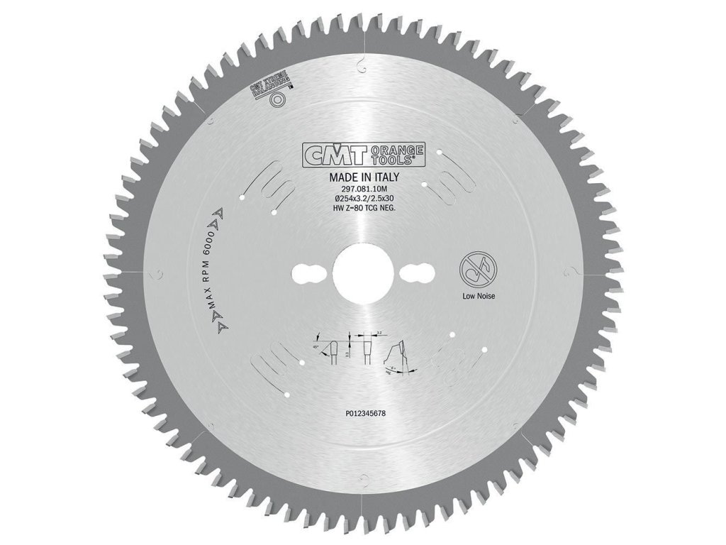 Pilový kotouč s negativním úhlem čela. Konstruován pro vysoký výkon, kvalitní řez a dlouhou životnost ostří. CMT kotouč pro neželezné kovy a plasty je ideální pro zkracovací, radiální a kotoučové pily. Použití pro řezání všech neželezných kovů a plastů, lamina a oboustranně povlakovaných desek melaminem. POZOR: Doporučujeme používat mazání emulzemi pro neželezné kovy a plasty.