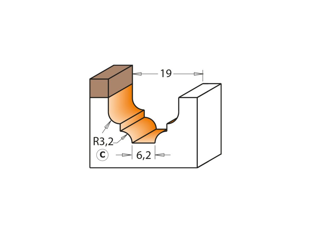 CMT Profilová čelní fréza s ložiskem - Profil C, R3,2 D19x12,3 S=6 HW