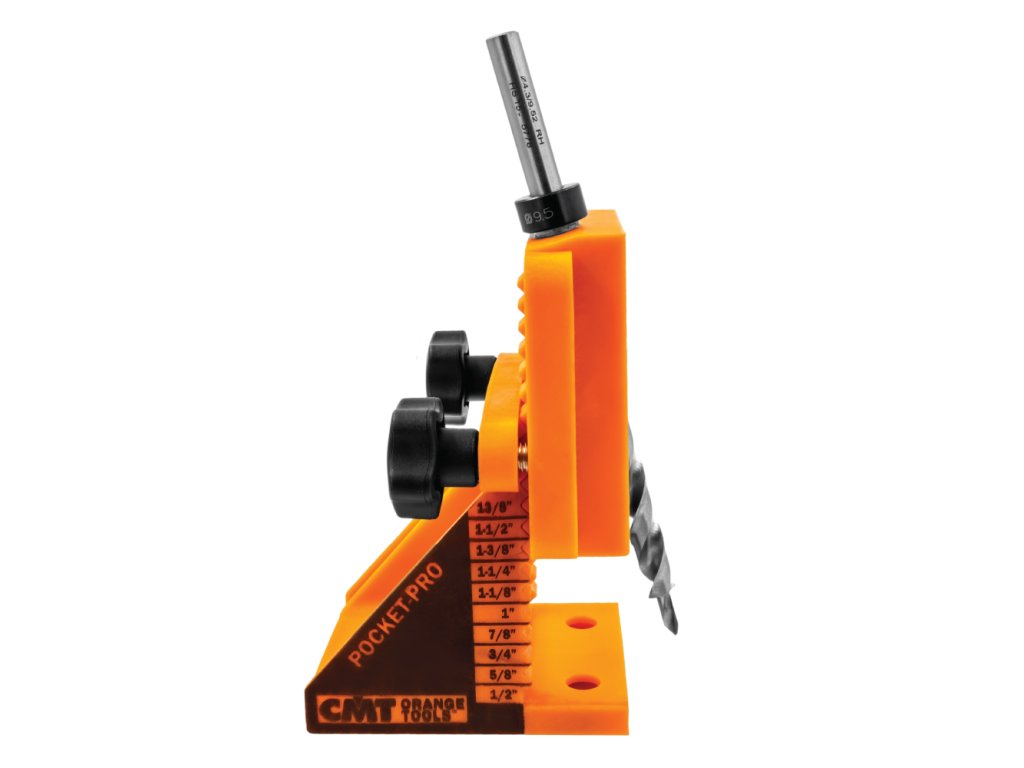 • CMT vrtací přípravek Pocket-Pro je určen pro rychlé, jednoduché a přesné spojování nábytku, korpusů a rámů.• Umožňuje tvořit pevné, slepé spoje v deskách o tloušťce 12,7 – 40 mm, to vše s neuvěřitelnou rychlostí a přesností. Hlavní výhodou vrtacího přípravku Pocket-Pro je unikátně lisované tělo s tvrzenými vrtacími pouzdry a dvoudílná zámková konstrukce. Posunem nahoru a dolů jednoduše nastavíte tloušťku vrtaného materiálu na stupnici po 1,6mm, aniž byste museli vyvrtávat testovací otvory nebo cokoliv měřit. Jestli již máte zkušenost s podobnými vrtacími přípravky, pak vám některé vlastnosti přijdou známé, Pocket-Pro ovšem nabízí mnohé další výhody.Například:• Některé přípravky vyžadují rozebrání, pokud chcete nastavit jinou tloušťku obrobku. Pocket-Pro ale stačí posunout nahoru nebo dolů po stupnici od 12,7mm až po 40mm a tak nastavit požadovanou tloušťku spojovaného materiálu.• Jiné přípravky vyžadují neustálé upravování hloubkového dorazu pro různé druhy spojů. Pocket-Pro od CMT umožňuje provádět různé změny, zatímco zanechá doraz v té samé pozici vrtáku.• Navíc, s Pocket-Pro systémem od CMT můžete rychle upravit umístění otvoru pro vrut vůči tloušťce obrobku a tím vytvořit silnější spoj za pomoci delších šroubů, nebo také nechat více materiálu ve spoji.• Podívejte se na Pocket-Pro systém ještě dnes. Nabízí jednoduchost pro začátečníky a přesnost pro profesionály, Pocket-Pro je světově nejuniverzálnější přípravek pro tvorbu slepých spojů.Součást balení:• Vrtací přípravek• Vrták D9,5 d3,8 S=9,5 mm• Hloubkový doraz D9,5 mm• Bit čtyřhranný 152 mm• Sada šroubů 30ks - L31,7 mm