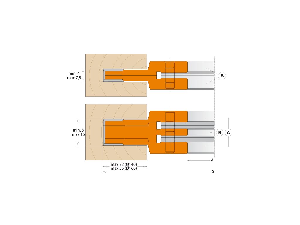 CMT Stavitelná drážkovací fréza 3dílná MAN - D140x4-15 d30 Z4+4 OCEL