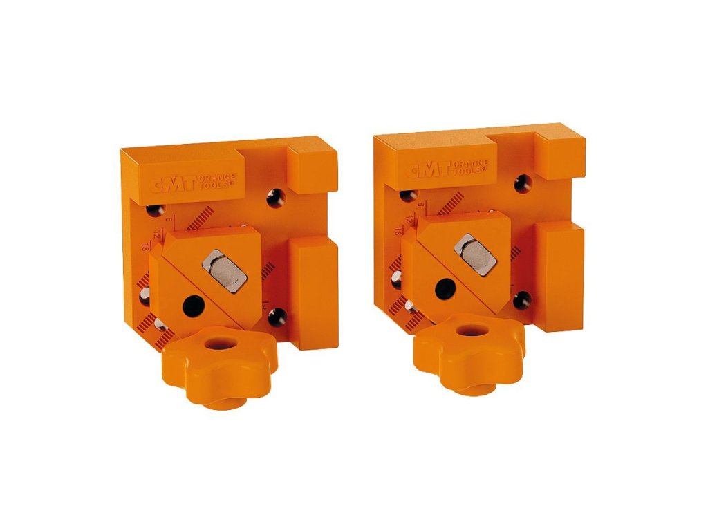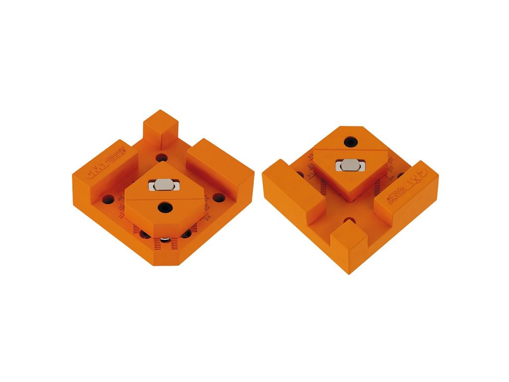 Sada 2ks nastavitelných CMT rohových svěrek na rámové konstrukce, pomocí kterých zajistíte fixaci dílce v přesném úhlu 90°. Svěrky využijete pro precizní fixaci při lepení nebo šroubování rohových rámových spojů nebo T-spojů, které jsou typické u regálů nebo skříní. Svěrkami lze stahovat libovolný materiál o tloušťkách od 6 do 25,4 mm. Tyto svěrky vám zjednoduší práci bez nutnosti přidržovat díly k sobě rukou. Speciální konstrukce svěrek umožňuje ovládat fixaci dílce z obou stran svěrky, zvenčí pomocí růžicové matice a zevnitř pomocí šestihranného imbus klíče.Použití svěrek je velmi snadné. Vložte dílec-otočte upínací maticí a máte hotovo. Na každou stranu rohu okamžitě působí stejný tlak a máte zaručený přesný 90° úhel.Svěrky jsou vyrobeny z robustního a odolného plastu a jsou opatřeny dvojitou stupnicí v milimetrech a palcích.Rozměry: 100x100x35 mm