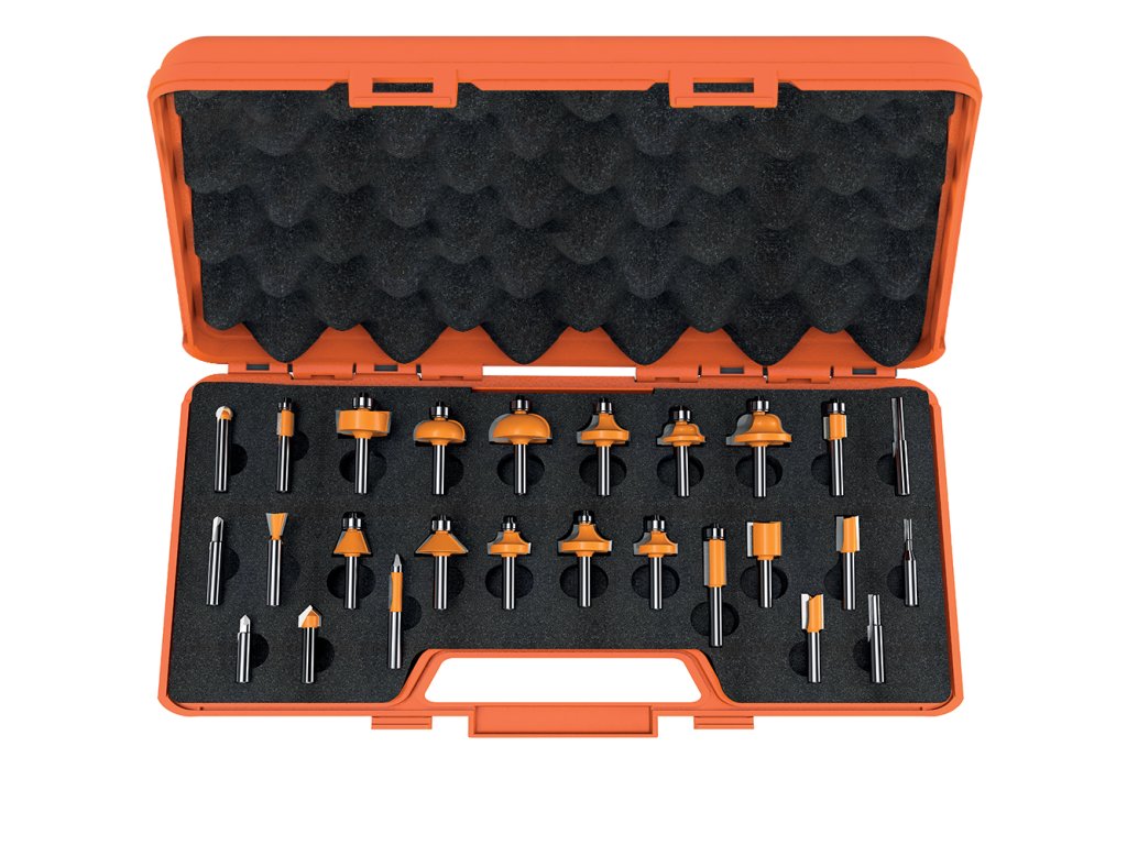 Ekonomicky výhodné sestavy fréz obsahují široký výběr 26 kusů nebo 15 kusů nejpoužívanějších CMT fréz. Za tyto sady fréz zaplatíte mnohem méně než při zakoupení jednotlivých fréz. Navíc je v ceně plastové pouzdro pro bezpečné skladování. Ideální pro zkušené řemeslníky a profesionály.
