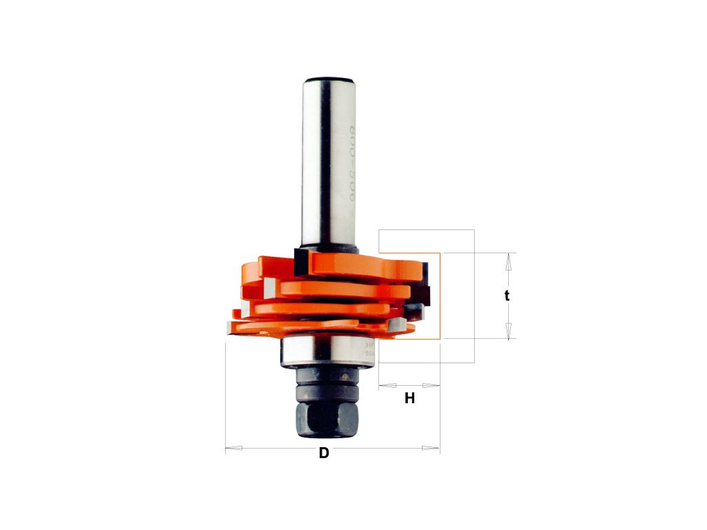 HM tvrdokovové řezné hrany fréz se nesmí nikdy dotýkat. Používejte podložky podle obrázku. Používejte pouze podložky dodané v sadě. Zkontrolujte, zda jsou všechny frézy namontované ve správném směru otáčení. Podívejte se pod upínací trn, zda se frézy budou otáčet ve směru hodinových ručiček.