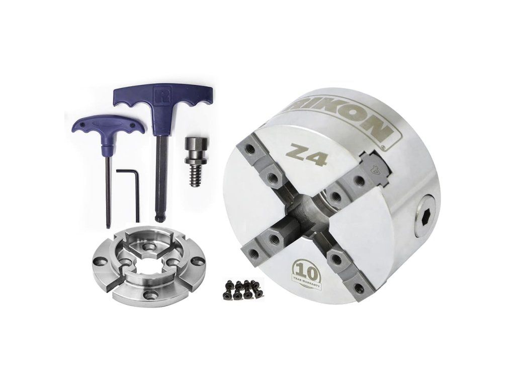 Sada čtyřčelisťového sklíčidla Z4 ( objednací kód 71-120 ) je dokonalým a nepostradatelným příslušenstvím pro každý soustruh na dřevo. Hodí se např. pro soustružení misek, talířů, a ozdobných předmětů ( společně se správně zvolenou čelistí - dle typu práce ). Toto 4-čelisťové samostředicí sklíčidlo je vyrobeno s CNC přesností z vysokopevnostní oceli s převodovým systémem čelistí pro snadné ovládání a vynikající upínací sílu. Vylepšená konstrukce jezdců sklíčidla poskytuje větší pevnost pro upevnění různých typů čelistí. Pečlivě opracované tělo sklíčidla a vnitřní převodový systém fungují bezchybně pro spolehlivé zavírání a otevírání pomocí přiloženého speciálního klíče.