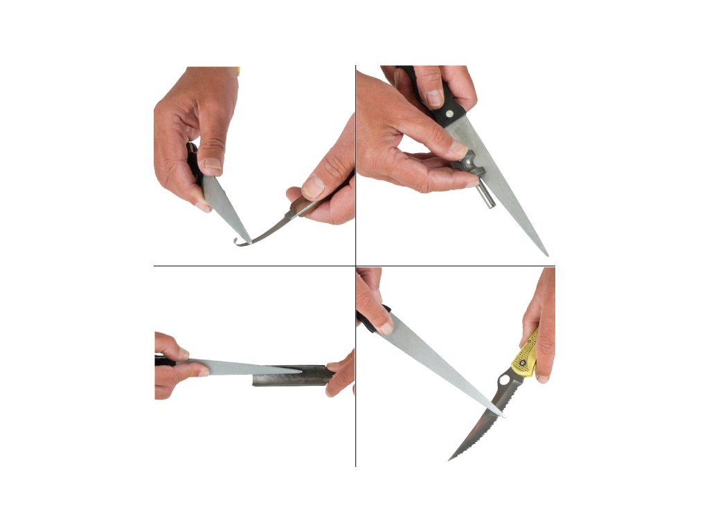 Brousek má půlkulatý tvar, a proto můžete dobře brousit vnitřní i nvější ostří soustružnických nožů, pilové kotouče, dláta, profilové nože i kuchyňské nože a zahradnické nůžky.