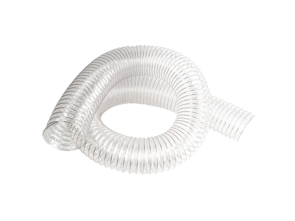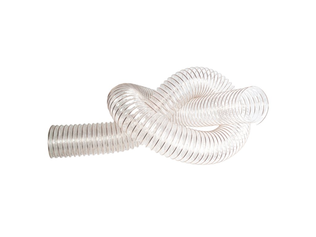 Vysoce kvalitní PU (polyurethanová) flexibilní 102mm průhledná odsávací hadice v délkách 2,5m , 5m nebo 10 metrů. Je vyztužená poměděnou ocelovou spirálou a je ideální pro použití k odsávání třísek a pilin s jedním mobilním odsavačem od různých strojů, které jsou v dílně. Lze použít na odsávací hrdla okolo průměru 100mm. Dodává se ve stlačeném stavu. Délka hadice odpovídá maximálnímu natažení.