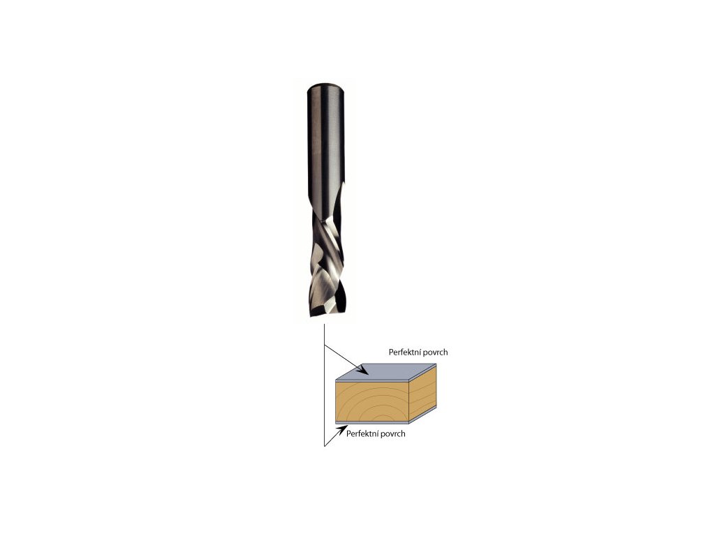 Spirálová fréza má půlené ostří, v dolní části s pozitivním sklonem a v horní části s negativním sklonem. Tento typ ostření je ideální pro frézování všech materiálů. Výhodou je perfektní hrana řezu (bez otřepů) na dolní i horní straně desky. Určena pro použití na CNC obráběcích centrech i ručních horních frézkách.
