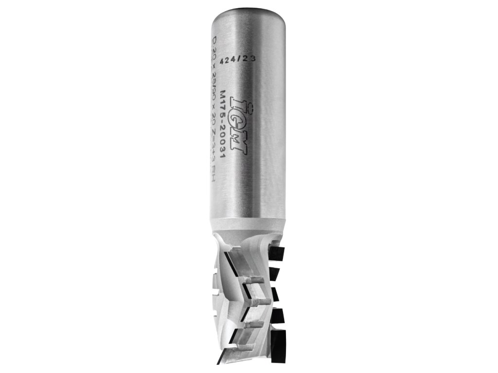 Stopkové Diamantové frézy typu M175 jsou určené pro průmyslové použití v CNC strojích. Díky třem řadám diamantových zubů dosahují nejvyššího výkonu při obrábění. Životnost nástrojů je cca 50x delší než životnost standardního nástroje s tvrdokovovými HM zuby. Ideální nástroj pro výrobu spojů, výřezů, drážek nebo ořezávaní v materiálech jakou jsou DTD, melamin a laminát, MDF, HPL, papír a dýhované DTD. Při volbě řezných podmínek dbejte na charakter operace a typ obráběného materiálu.