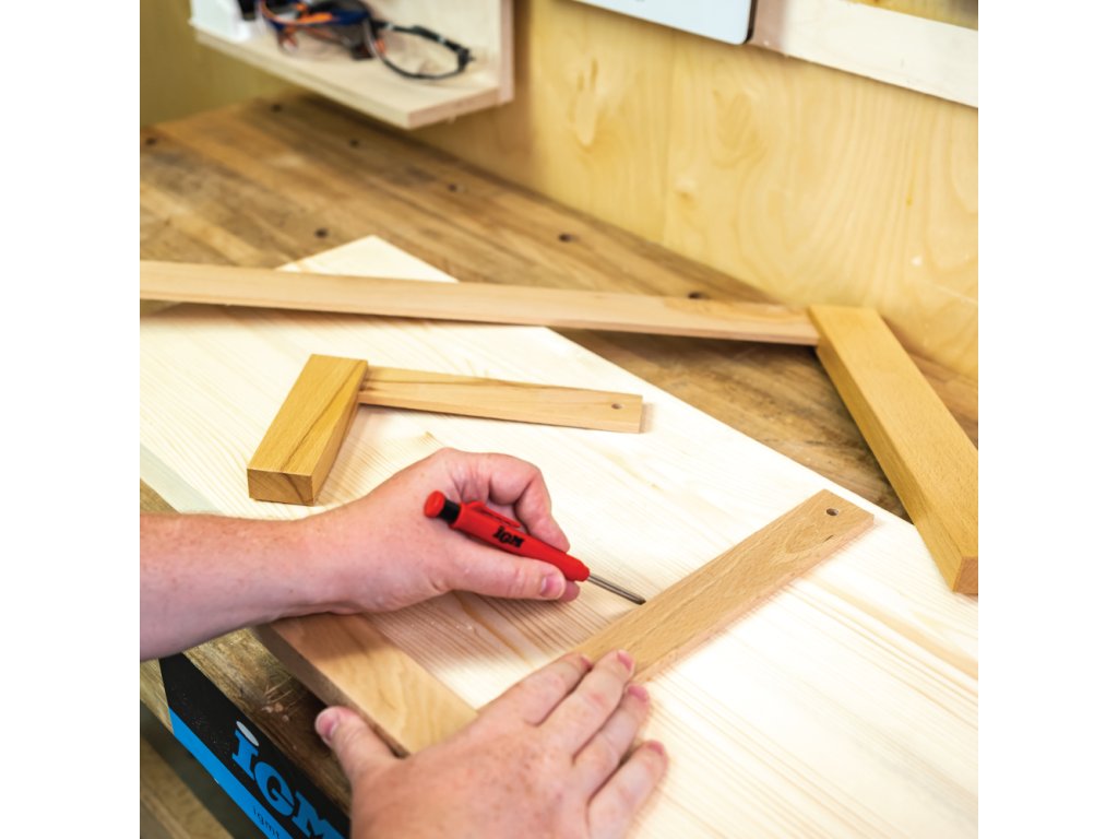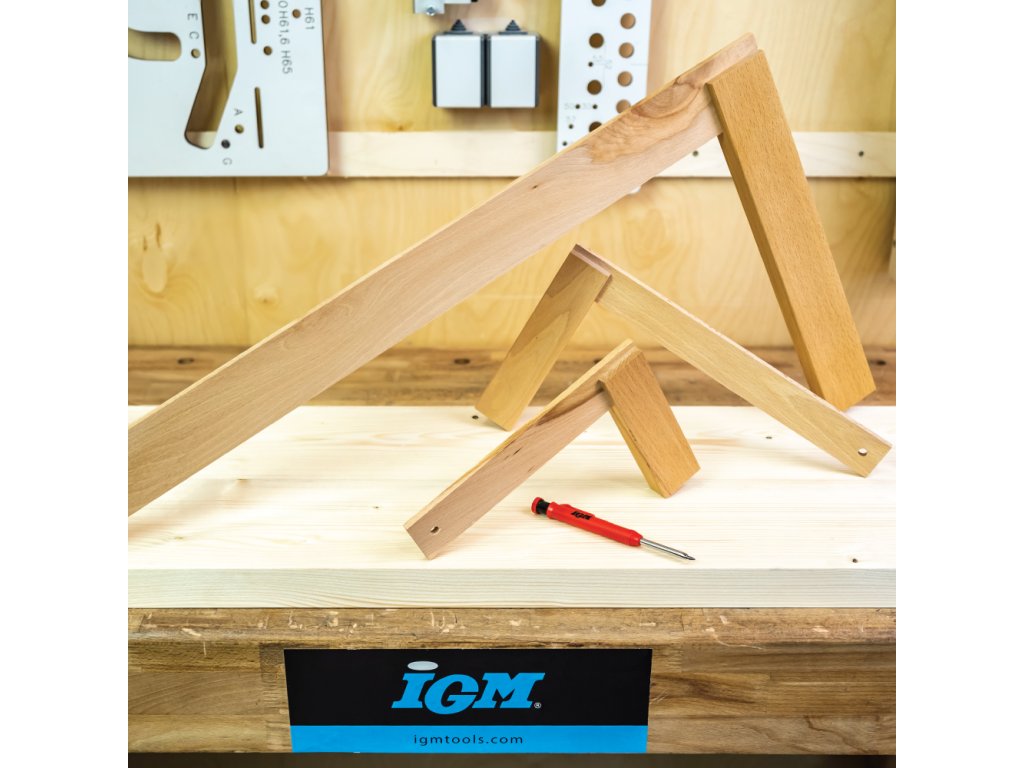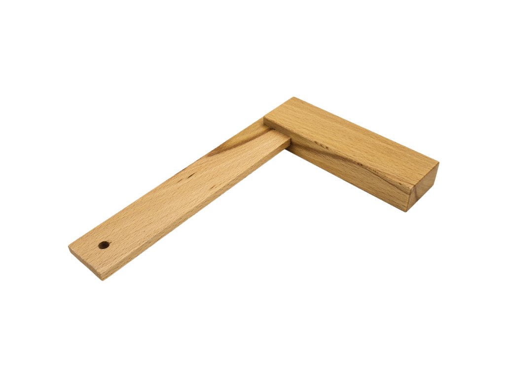 Pro orýsování a přenesení pevného úhlu 90°.Vyrobeno z tvrdého dřeva.