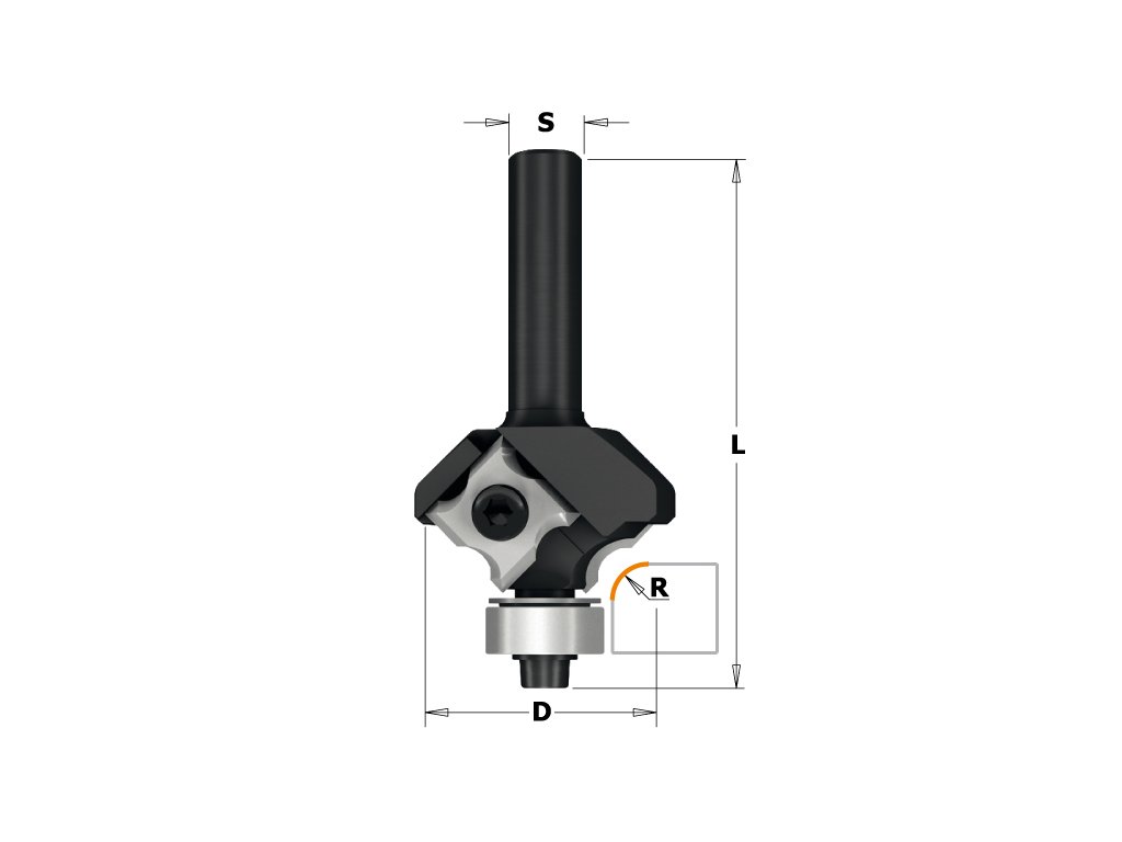 Žiletková fréza osazená dvěma trvdokovovými žiletkami pro zaoblení hran. Radius je vybroušen na všech 4 stranách žiletky pro maximální efektivitu nástroje. Fréza je osazena žiletkou s radiusem R3mm nebo R2mm, který se používá zejména na ABS hrany. K fréze je možné dokoupit i radius R1mm a R1,5 mm, kterým můžete srazit hranu při lepení umakartu, dýhy nebo lamina na deskách. Pro použití na ručních horních frézkách.