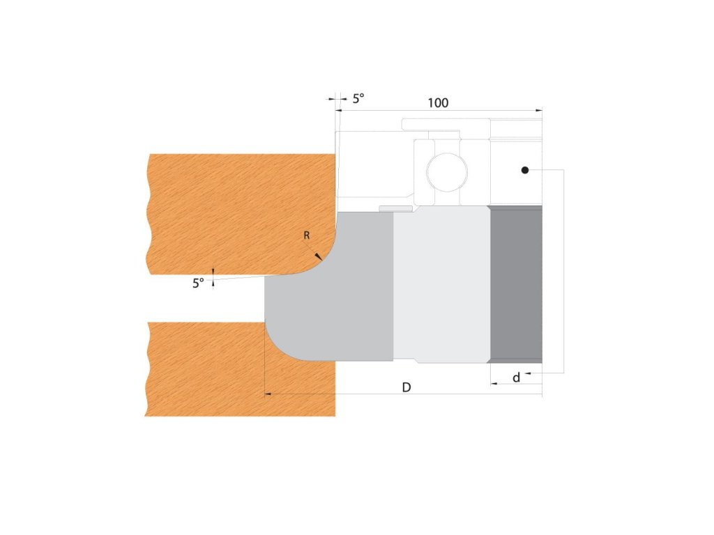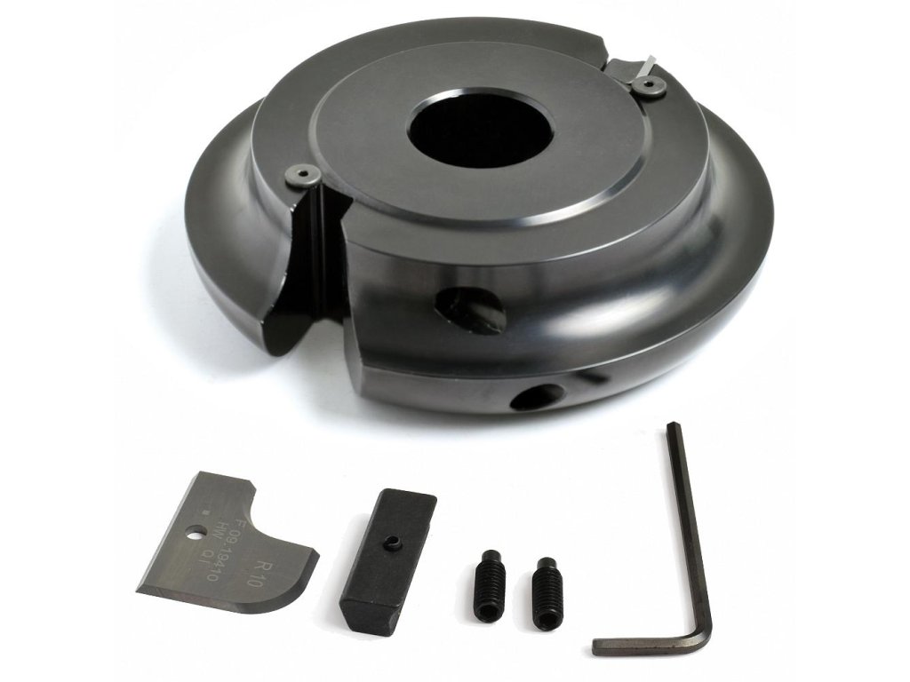 Fréza se používá pro vytváření vnitřních a vnějších radiusů- zaoblení. Fréza je osazena dvěma radiusovýma žiletkama s vydutým a vypouklým radiusem R10. Další radiusy lze doobjednat. Pro zaoblování a profilování hran desek a dílů z měkkého a tvrdého dřeva. Pro frézování zakřivených dílů je možné k fréze osadit kopírovací ložisko. Upínací průměr d=30 mm.