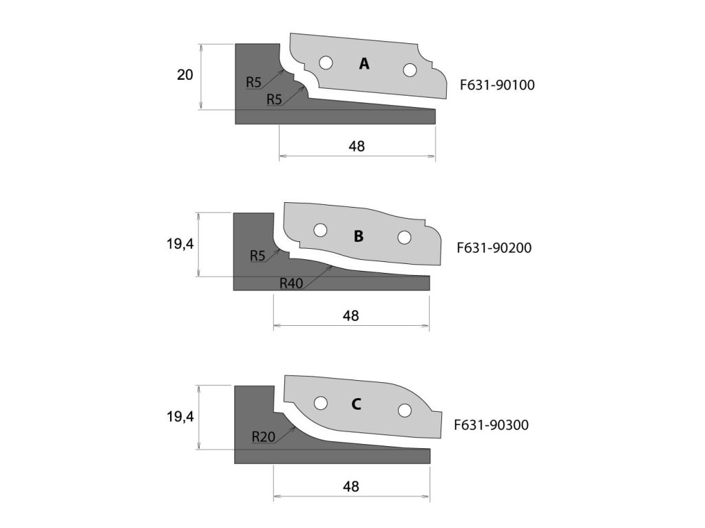 IGM F631 Výplňová fréza MEC - Profil A, D160x20 d30mm Z2 horní ALU