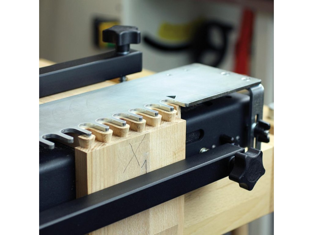 Snadno a rychle vyrobíte elegantní spoje. Vhodné pro všechny typy horních frézek. • Dvě velikosti přípravku.• Pevné ocelové tělo.• Přesná laserem řezaná šablona z 4mm pozinkovaného ocelového plechu.• Masivní držáky šablony.• Posuvné dorazy pro jednoduché ustavení dílů vzhledem k šabloně.• Robustní ocelové přítlaky• Jednoduché nastavení a používání.• Šablony pro minirybinu, čepový spoj a otevřenou rybinu jsou k dispozici jako příslušenství.• Speciální úchytné otvory pro umístění dorazů na šabloně.IGM cinkovací přípravek je určen pro výrobu polokrytých rybinových spojů pomocí ruční frézky a stopkové frézy. Polokryté rybinové spoje se nejčastěji používají na zásuvkách z masivního dřeva. Díky volitelným šablonám lze přípravek rozšířit na výrobu různý typů spojů, jako jsou čepové spoje, otevřené rybinové spoje, které využijete pro výrobu nábytku z masivního dřena, šperkovnice nebo pracovní bedny z masivního dřeva. Robustní přítlaky bezpečně upnou i větší dílce. Jednoduše obrobek upevníte na tělo přípravku, upnete zvolenou šablonu, nastavíte hloubku frézování a pomocí kopírovacího kroužku upnutého v ruční frézce vyfrézujete zvolený spoj. Cinkovací přípravek je vyroben v České Republice.Parametry:• Průměr kopírovacího kroužku: 15,8 x 4mm• Max. průměr základny frézky: 180mm• Velikost spoje: 12,7mm 14°• Tloušťka obrobku: 11 - 25mm• Šířka obrobku: 610mmSoučást balení:• Kompletní cinkovací zařízení• 12,7mm šablonu pro polokrytý rybinový spoj• Kopírovací kroužek D15,8 4mm• HM Rybinovou frézu D12,7 x 12,7/14° stopka 8mm• Jasný a přehledný návod k obsluzeDo některých typů horních frézek není možné přímo upnout IGM kopírovací kroužek. Pomocí průhledné redukční desky FRB170, kterou připevníte na základnu Vaší horní frézky, přesně vycentrujete a upnete IGM kopírovací kroužky. Kód FRB170.