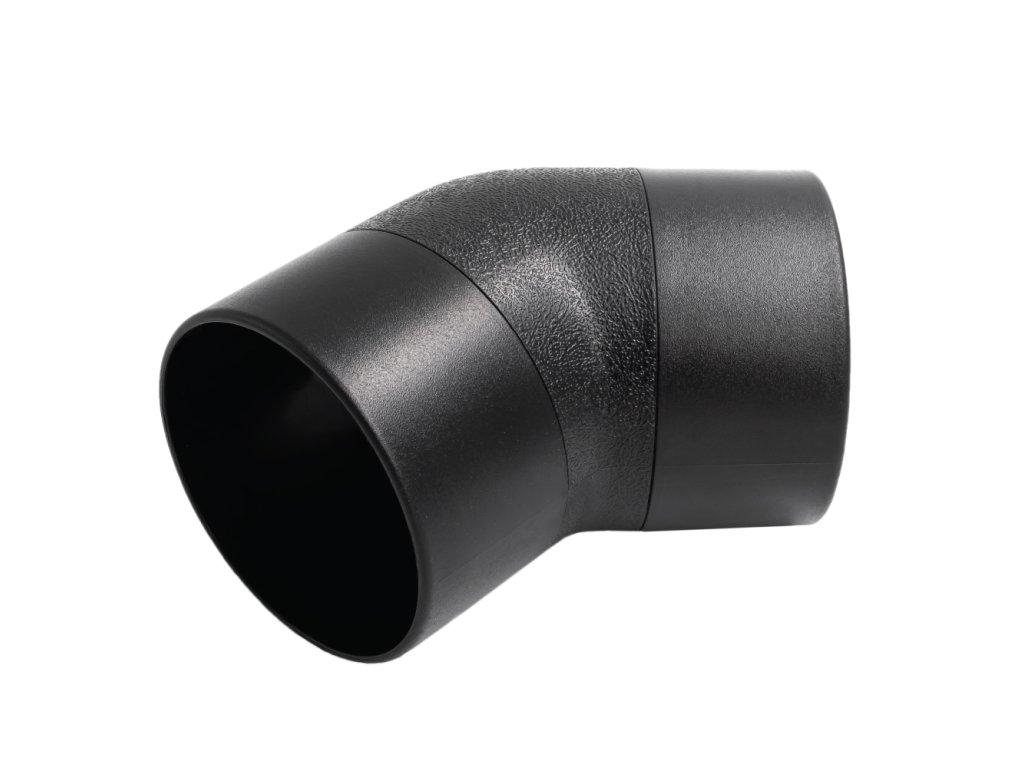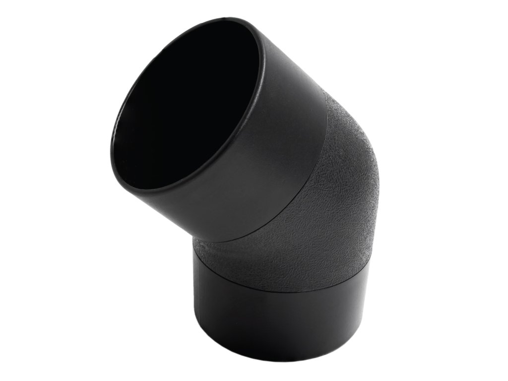 Koleno má mírný rádius, který vytváří menší odpor vzduchu a zároveň minimalizuje riziko ucpání potrubí. Koleno je určeno pro zatočení potrubí o 45° a hadici o průměru 100 mm.
