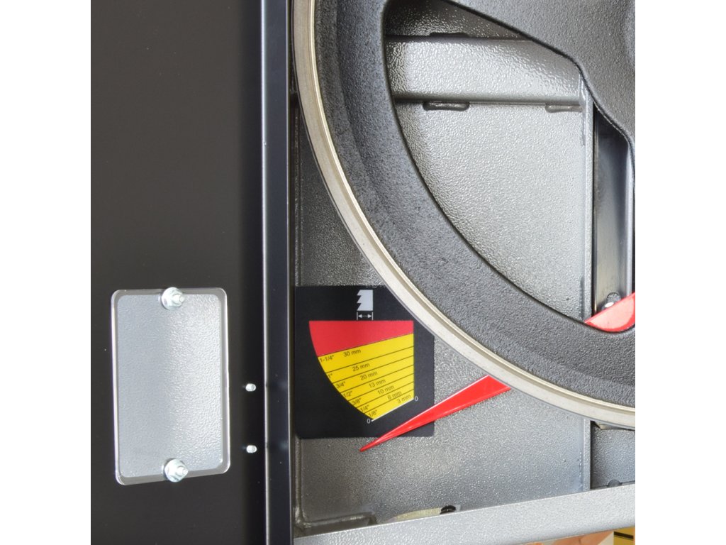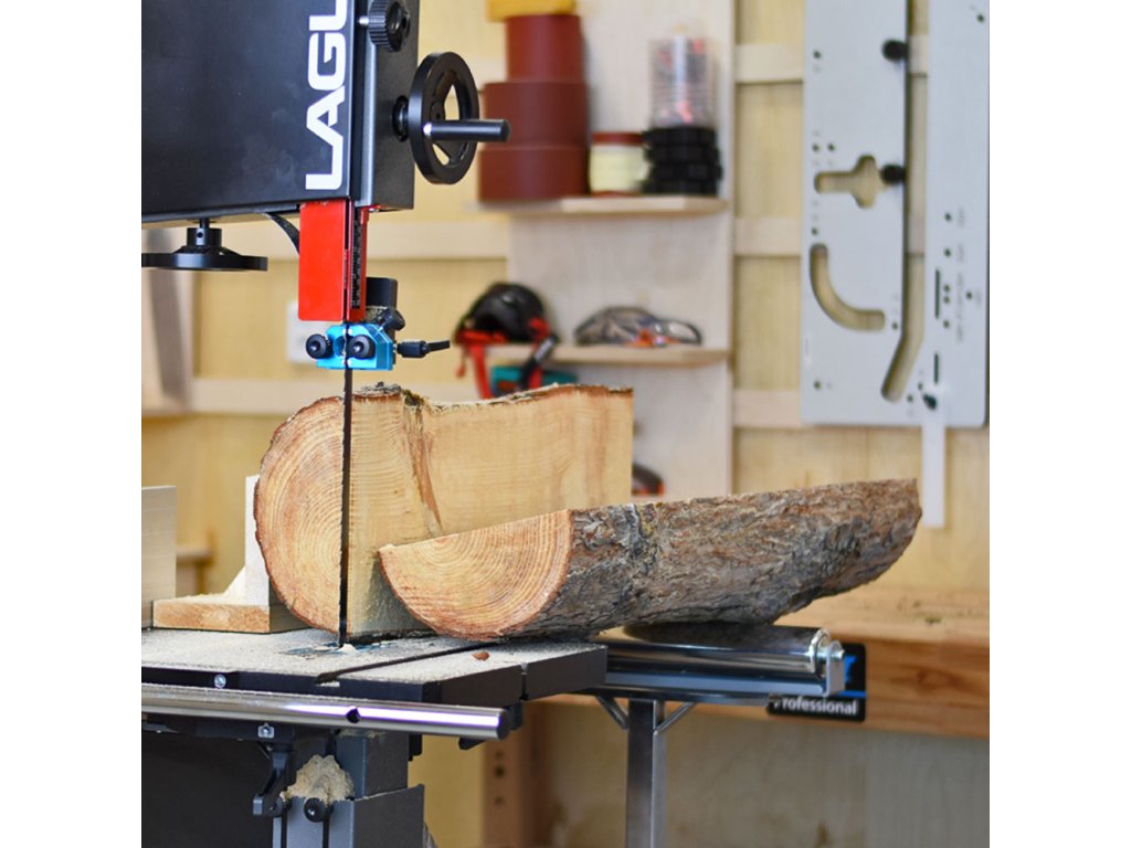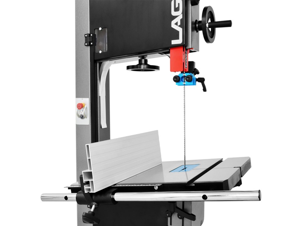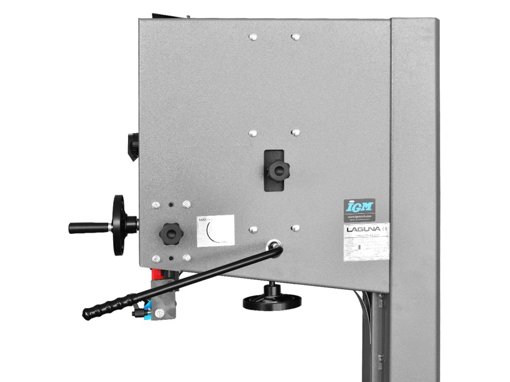 Pila je vybavena odolnými keramickými vodítky pilového pásu nad i pod stolem. Keramická vodítka poskytují velmi přesné vedení, zaručují ideální kvalitu řezu a prodlužují životnost pilového pásu. Průhledy v horní části stroje vám umožní kontrolovat napnutí nebo uvolnění pásu za chodu, nebo případné sjíždění pásu z kola. Praktickým prvkem je také páka na zadní straně pily pro rychlé uvolnění pásu. Pila IGM Laguna 14bx se odlišuje proti konkurenci především promyšlenou konstrukcí, která umožňuje extra vysoký řez až 346 mm.