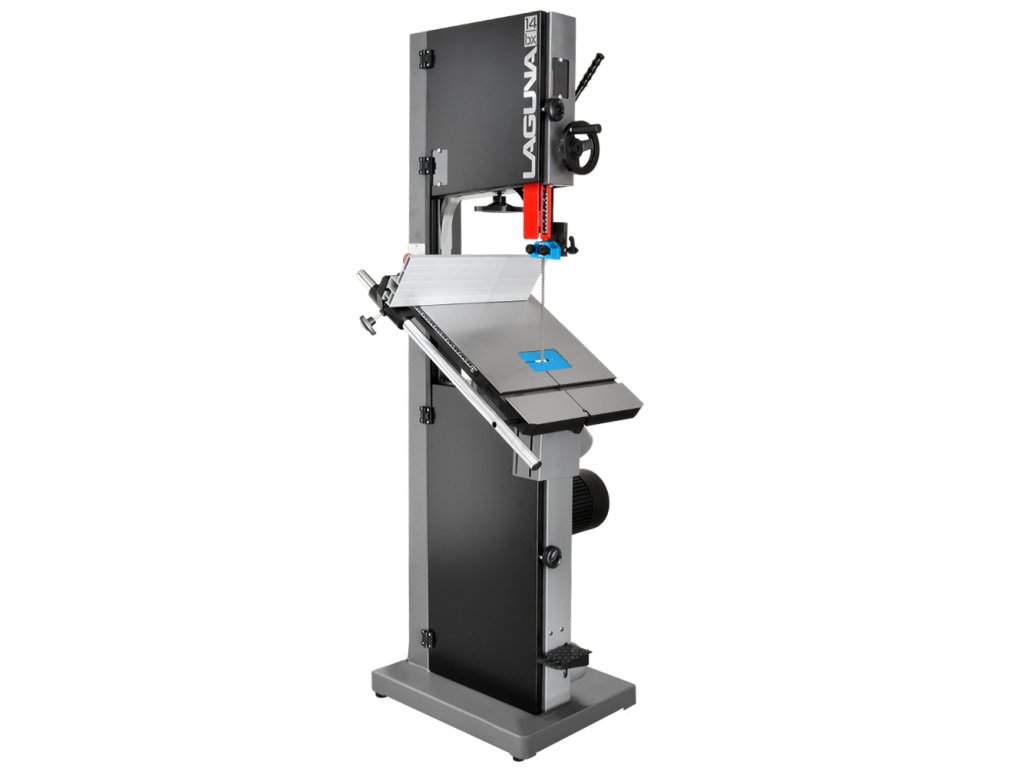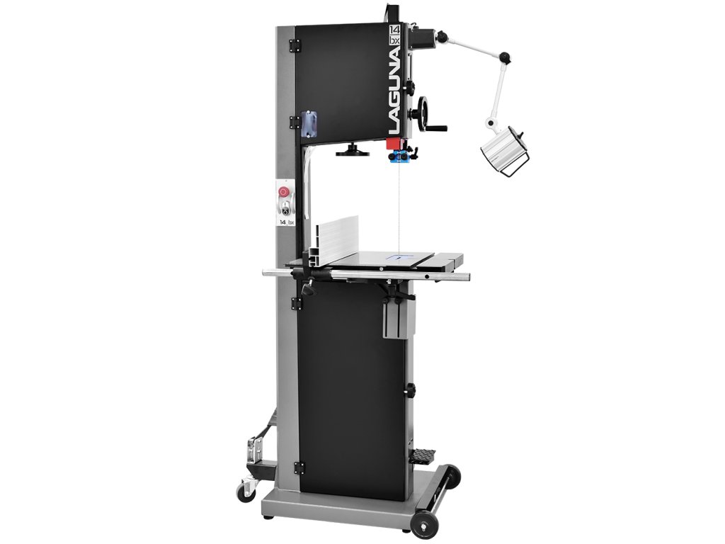Pásová pila IGM Laguna 14bx je vybavena těžkým stabilním rámem a silným 1,9kW asynchronním motorem. Broušený pracovní litinový stůl o rozměrech 540 x 400 mm poskytuje stabilitu i při řezání větších dílců. Stůl lze naklopit v rozmezí od -7° do +45°. Masivní vysoké paralelní pravítko je snadno nastavitelné a lze nainstalovat do dvou pozic (vertikálně a horizontálně). Pevná litá kola jsou vyvážená a opatřená polyuretanovým páskem po celém obvodu kola. Pásek je navržen tak, aby zvládal vyšší teplotu a vydržel déle než běžné pryžové výplně kol. Šnekový převod horního vedení pásu zaručuje maximální stabilitu i při nejvyšší výšce řezu. Pro jednoduché zastavení pily je spodní kolo vybaveno kotoučovou brzdou, ta se aktivuje sešlápnutím pedálu.