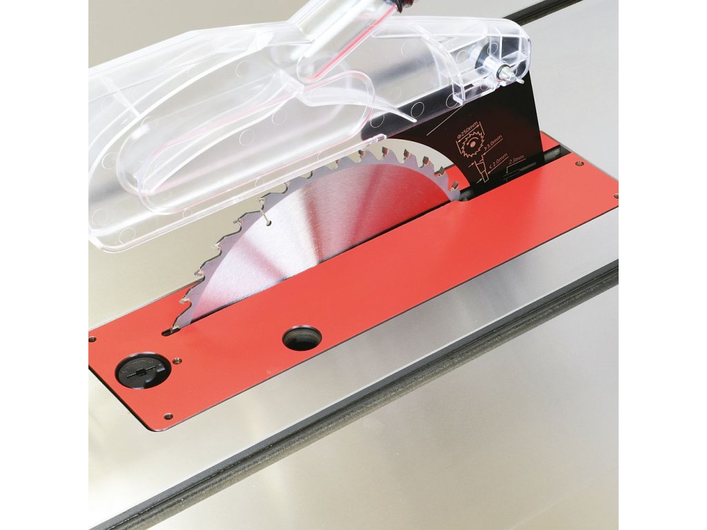 Pila je poháněna silným 2,1kW motorem. Robustní zavěšení motoru poskytuje stabilitu při práci a zaručuje tak perfektní řez. Vložka v litinovém stolu je vhodná pro všechny úhly řezu, od 0° do 45°. Vložka je jednoduše vyjímatelná pomocí excentrického zámku a je vybavena nastavitelnými šrouby pro přesné zarovnání s rovinou stolu. Na pilu lze použít drážkovací sadu kotoučů DADO s upínacím otvorem 15,87mm (5/8“).