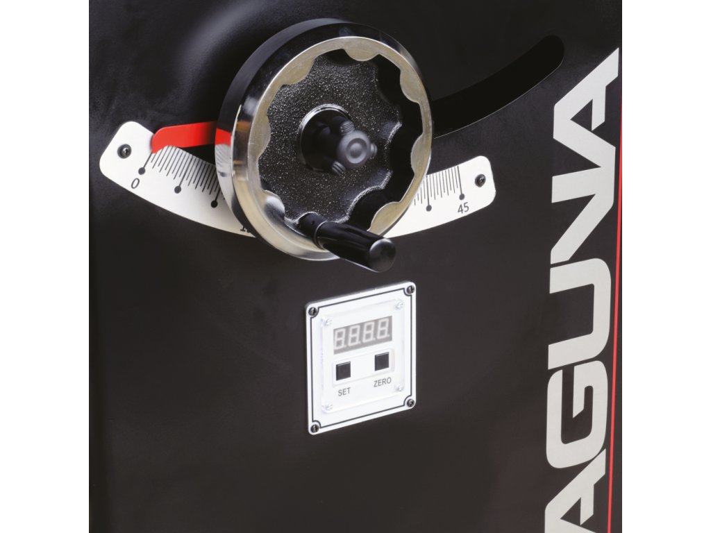Litinová ovládací kola s odklopnou rukojetí a uzamčením proti protočení zajišťují lehké a přesné naklopení pilového kotouče do 45° a zdvih nahoru a dolů. Pila je vybavena přesným digitálním ukazatelem úhlu pilového kotouče s podsvíceným displejem, který je zabudovaný v těle pily z přední strany. Pila má důmyslně řešené odsávání pilin ze spodní části i z horního odsávacího krytu. Pro připojení odsavače je pila vybavena 100mm kovovým hrdlem.
