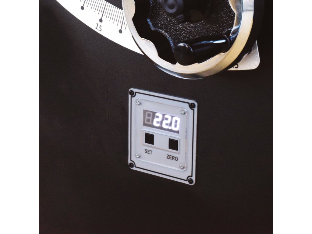 • Digitální ukazatel úhlu pilového kotouče zabudovaný v těle pily.