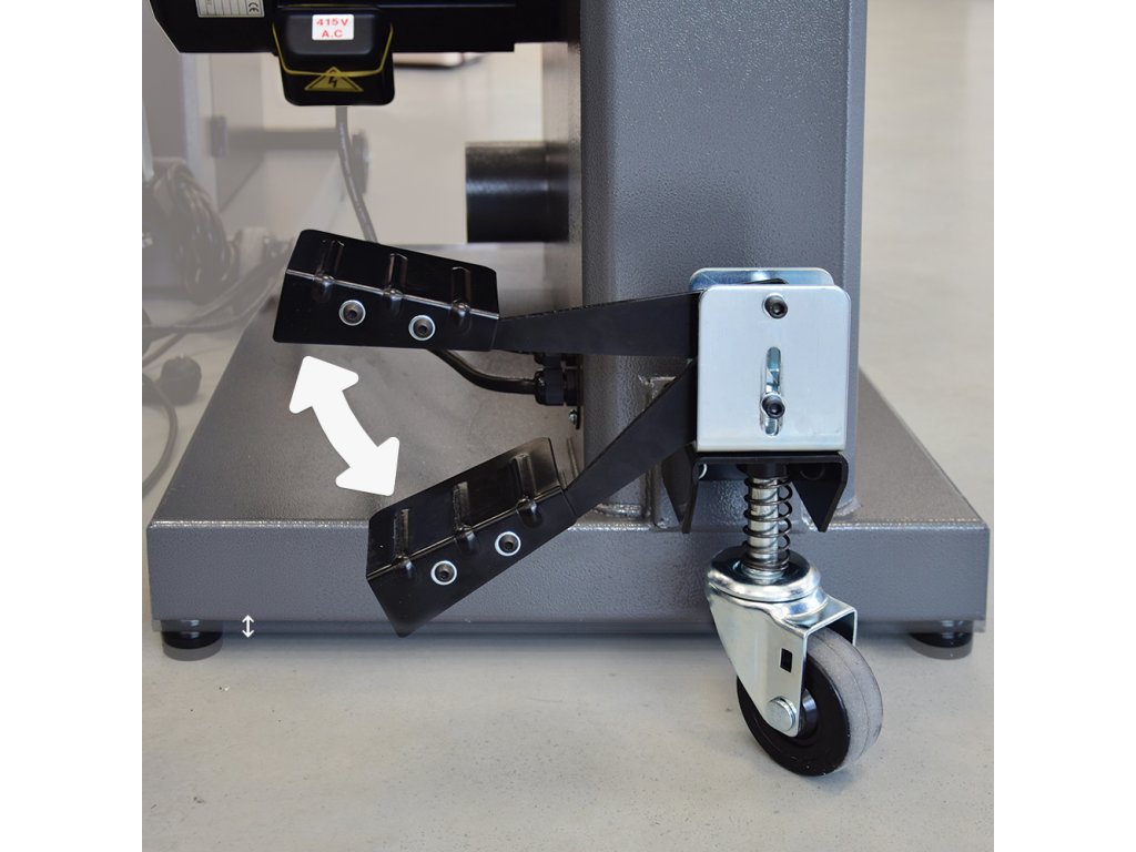 Praktický mobilní set pro pásovou pilu IGM LAGUNA 18bx. Jednoduchý přesun stroje po dílně díky dvěma stacionárním a jednomu otočnému kolečku. Sešlápnutím nebo naopak uvolněním pedálu ovládáte zdvih základny pily od podlahy.