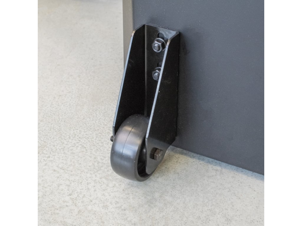 Set dvou přídavných kol určených pro montáž na levou boční stranu pily Laguna Fusion1 pro snadný přesun pily po dílně.