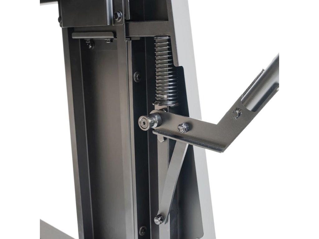 Vyprázdnění odpadního kontejneru je velmi snadné. Důmyslný rychloupínací systém zajišťuje zvednutí kontejneru k odsavači jedním pohybem. Zvednutím madla odejmete odpadní kontejner od odsavače. Naopak stlačením madla směrem dolů systém zvedne kontejner z podlahy a přitlačí jej k odsavači. Tím se zdvihnou kolečka nádoby do vzduchu a odsavač se lehce přesouvá po dílně bez tahání kontejneru na hadici.