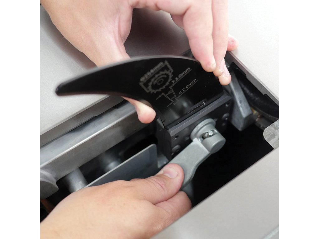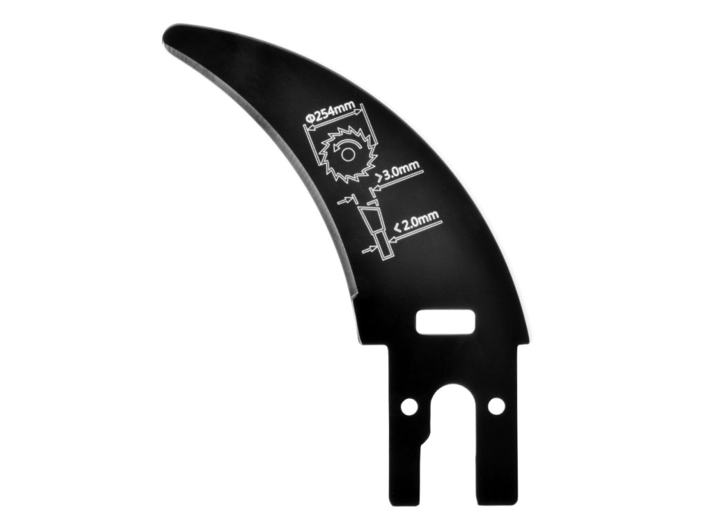 Vhodný v kombinaci s pilovým kotoučem průměru 254 mm, v případě použití kotouče průměru 250 mm je třeba klín zbrousit z hodní strany o 2 mm.