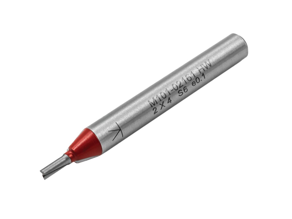 Tato fréza M101 má zuby i tělo nástroje vyrobené z tvrdokovu (HWM), což jí zajišťuje vysokou tuhost a přesnost. Je ideální pro přesné výřezy tenkých materiálů nebo frézování přesných drážek s malým rádiusem. Není určená pro zavrtávání do plochy materiálu. Při použití v CNC frézce lze najet do plochy materiálu postupným zanořením.