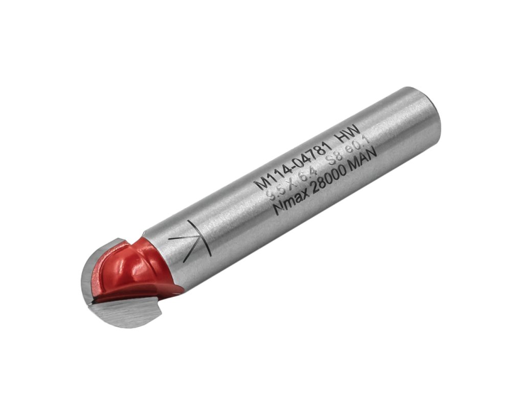 Čelní vypouklá fréza M114 se dvěma zuby z tvrdokovu je určená pro výrobu drážek ve tvaru „U“, například pro krájecí prkénka, pracovní desky z umělého kamene, dveře nebo čela zásuvek. Lze použít v ručních i CNC frézkách.