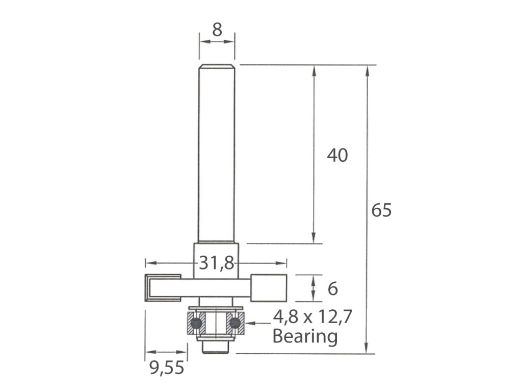 Tato fréza je určená pro ořezávání pomocí šablony, která je upevněná pod obráběným materialem.
