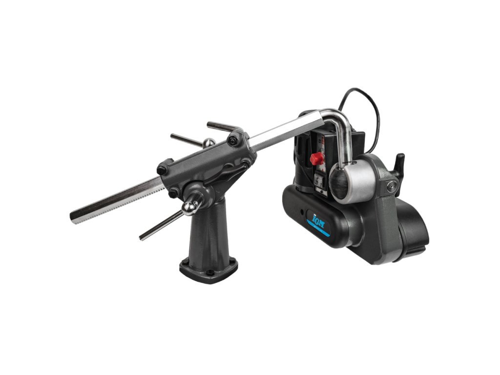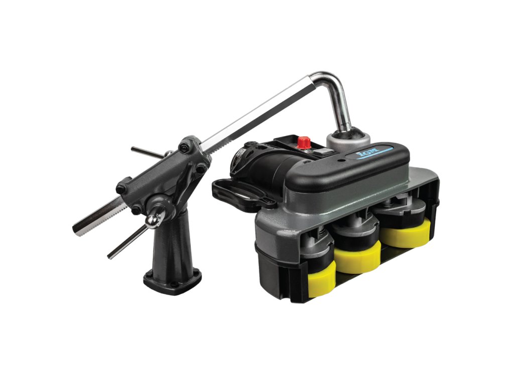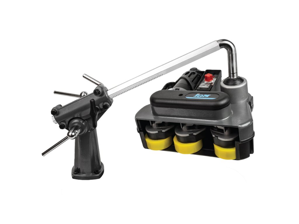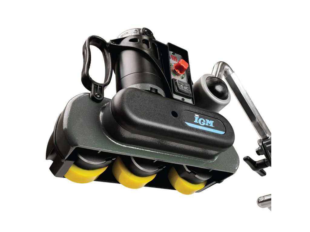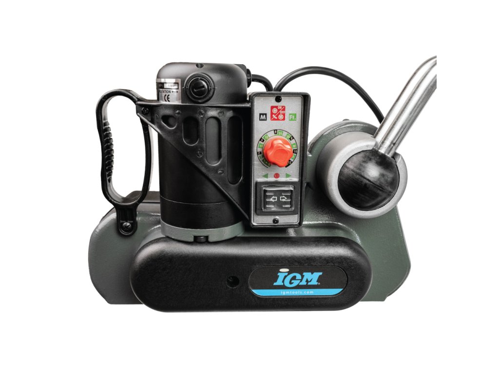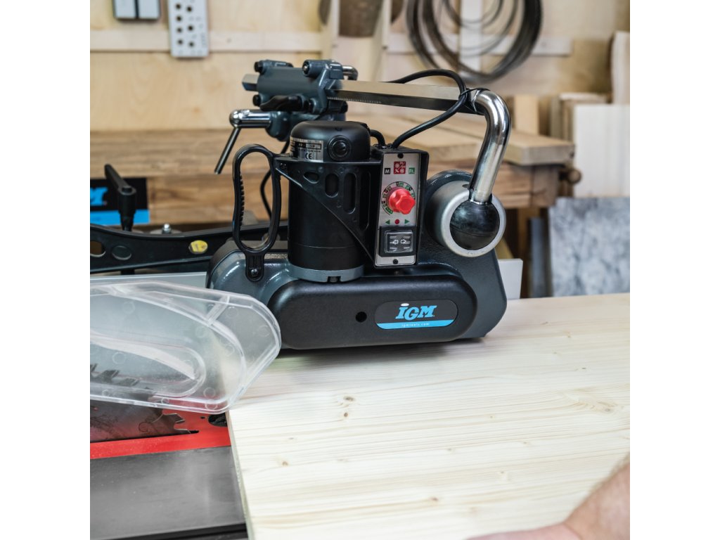 Malý a praktický podavač materiálu ideální pro použití na malé frézce, frézovacím stolku nebo srovnávačce či kotoučové pile, ale i manuální olepovačce. Tři odpružené podávací rolny s plynule měnitelnou podávací rychlostí v rozsahu 2-12m/min a s přepínáním zpětného chodu zajišťují precizní přilnavost a skvěle se vyrovnávají s nerovnostmi. Výsuvný stojan s ramenem má patentovaný 3D nastavitelný kloub pro optimální polohu podavače. Může být namontován přímo ke stolu stroje šrouby (nutno vrtat díry) nebo snadněji pomocí IGM Instalační desky pro podavače.