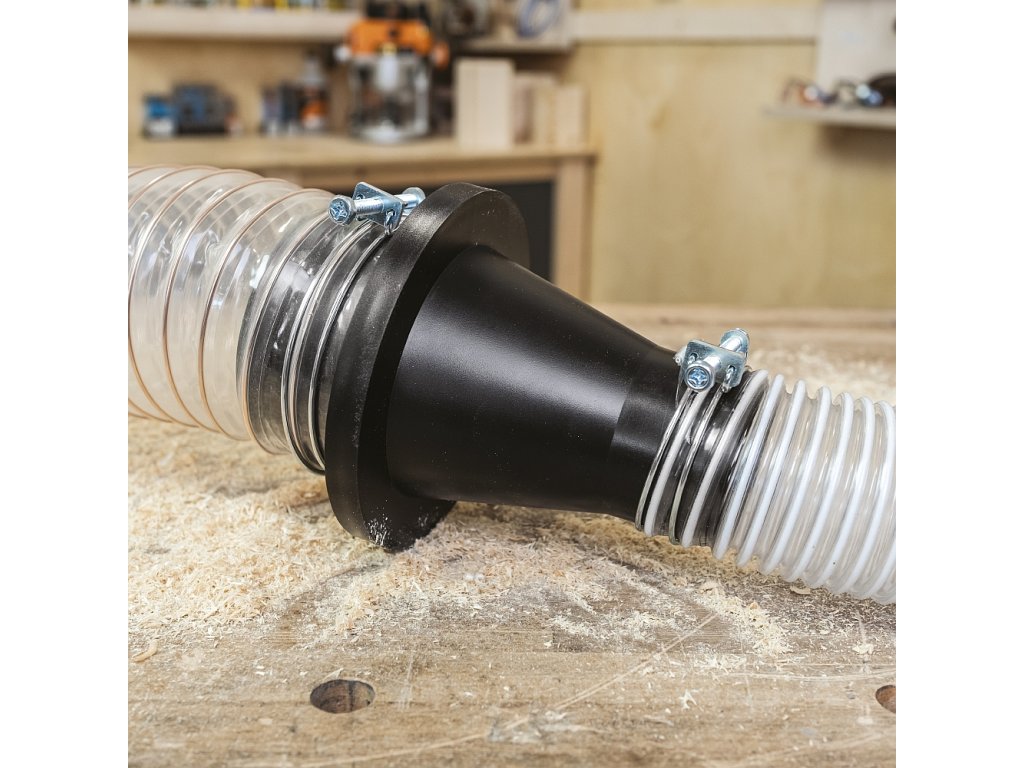 Magnetický konektor s redukcí k propojení odsávacích hadic o průměru 100 a 63 mm. Osazený 8 magnety a magnetickým kroužkem pro spolehlivý spoj hadic z odsavače a separátoru pilin.