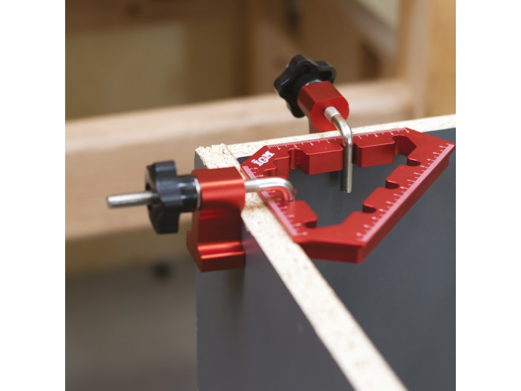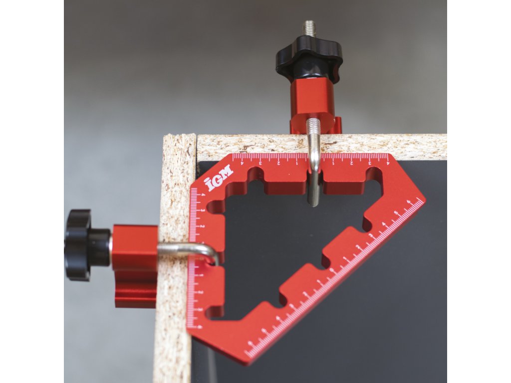 • Dva rohové úhelníky se 4 svěrkami.• Vždy přesný 90° nebo 45° úhel.• Laserem značená stupnice na každé hraně.Přesný duralový IGM Rohový úhelník se svěrkami Vám pomůže vždy dosáhnout přesného 90° nebo 45° úhlu. Úhelník má z vnější strany osazení, aby ho bylo možné snadno uchytit na obrobek, a laserem značenou stupnici po 1 mm na každé hraně. Součástí balení jsou 4 svěrky s maximální šířkou upnutí 60 mm a vysokou upínací silou. Vhodný pro spojování dílů při tvorbě nábytku, dveří, poliček a mnoho dalších.• Materiál ze slitiny hliníku je odolný proti opotřebení a korozi.• Šířka upnutí 60 mm.• Rozměr úhelníku 125 x 125 x 150 mm.• Tloušťka profilu 12 mm.Součást balení:• Úhelník 2 ks• Svěrky 4 ks