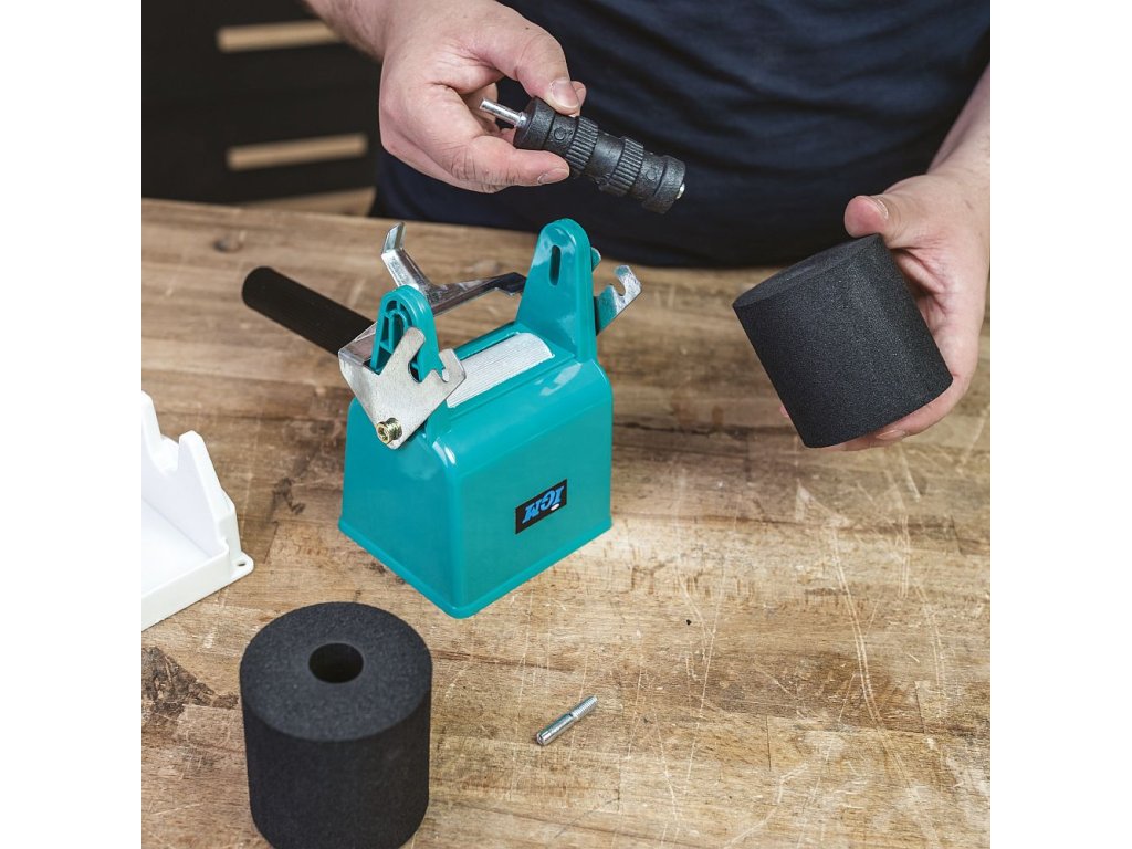 • Jednoduše a rovnoměrně nanáší lepidlo na lepené plochy. • Šířka pěnového válečku 74 mm.• Pro disperzní vodou ředitelná lepidla.• Vyrobeno z plastového výlisku, včetně odkládacího stojánku.• Náhradní váleček je součástí dodávky.Jednoduchá a ekonomická nanašečka lepidla je vyrobená z plastu a je určená pro krátkodobé kutilské použití. Součástí dodávky jsou 2 pěnové válečky.Pro optimální fungování nanašečky používejte lepidla s viskozitou 9500 mPa.s (+- 500 mPa.s).lze však použít i s lepidly s viskozitou 3500 – 9000 mPa.s.• Rozměry balení (DxŠxV): 13x15x20 cm• Rozměry produktu (DxŠxV): 13x24x20 cm• Hmotnost: 0,63 kgPoužití: Vyjměte náhradní váleček z vaničky. Našroubujte rukojeť na vaničku. Nalejte disperzní lepidlo do vaničky. Páka ve volné pozici – maximální dávka lepidla, páka přitažená – minimální dávka lepidla.