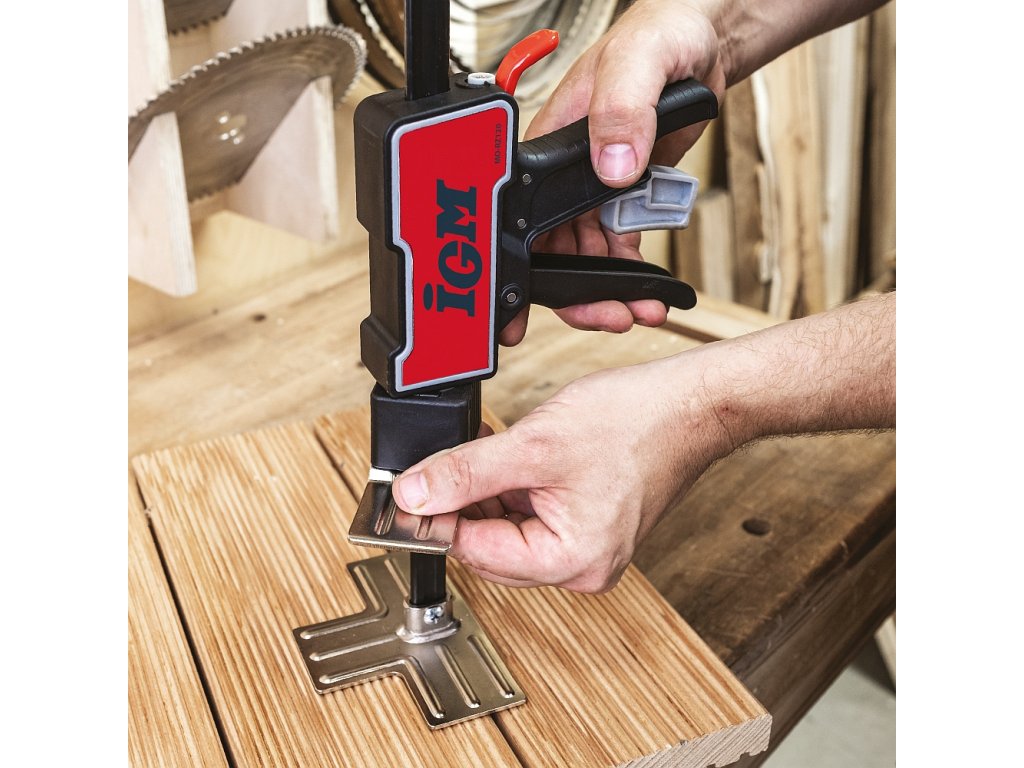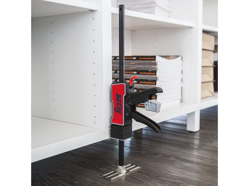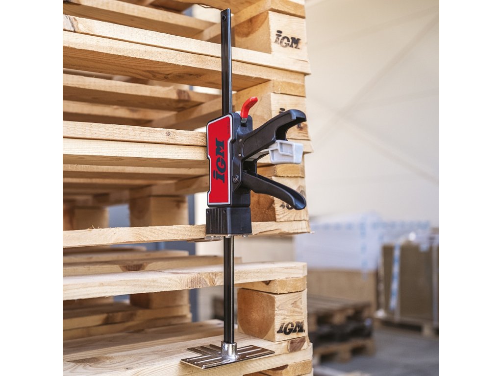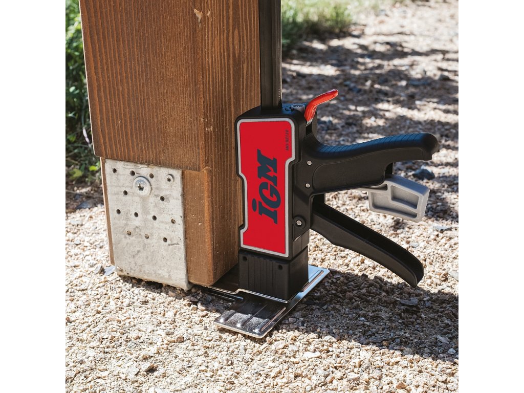 IGM Ruční zvedák je všestranný nástroj,který najde využití při jakémkoli druhu práce.S nosností 120 kg vám pomůže vyrovnat spotřebiče a zvednout těžký nábytek nebo stavební materiál jako trámy či sádrokartonové desky do výšky až 310 mm.Zvedák můžete ovládat pouze jednou rukou,což se hodí při instalaci oken,dveří a kuchyňských korpusů,kdy běžně potřebujete druhou ruku pro přidržení dílce.Po montáži základny na opačnou stranu vodicí tyče lze využít i jako svěrka pro upínání.Zvedák můžete použít i pro rozpínání například při montáži podlah.Stisknutím červené páčky se zvedák rychle spustí.Pokud potřebujete materiál spustit postupně a hlavně opatrně,využijete šedou páčku pro pozvolné spuštění.